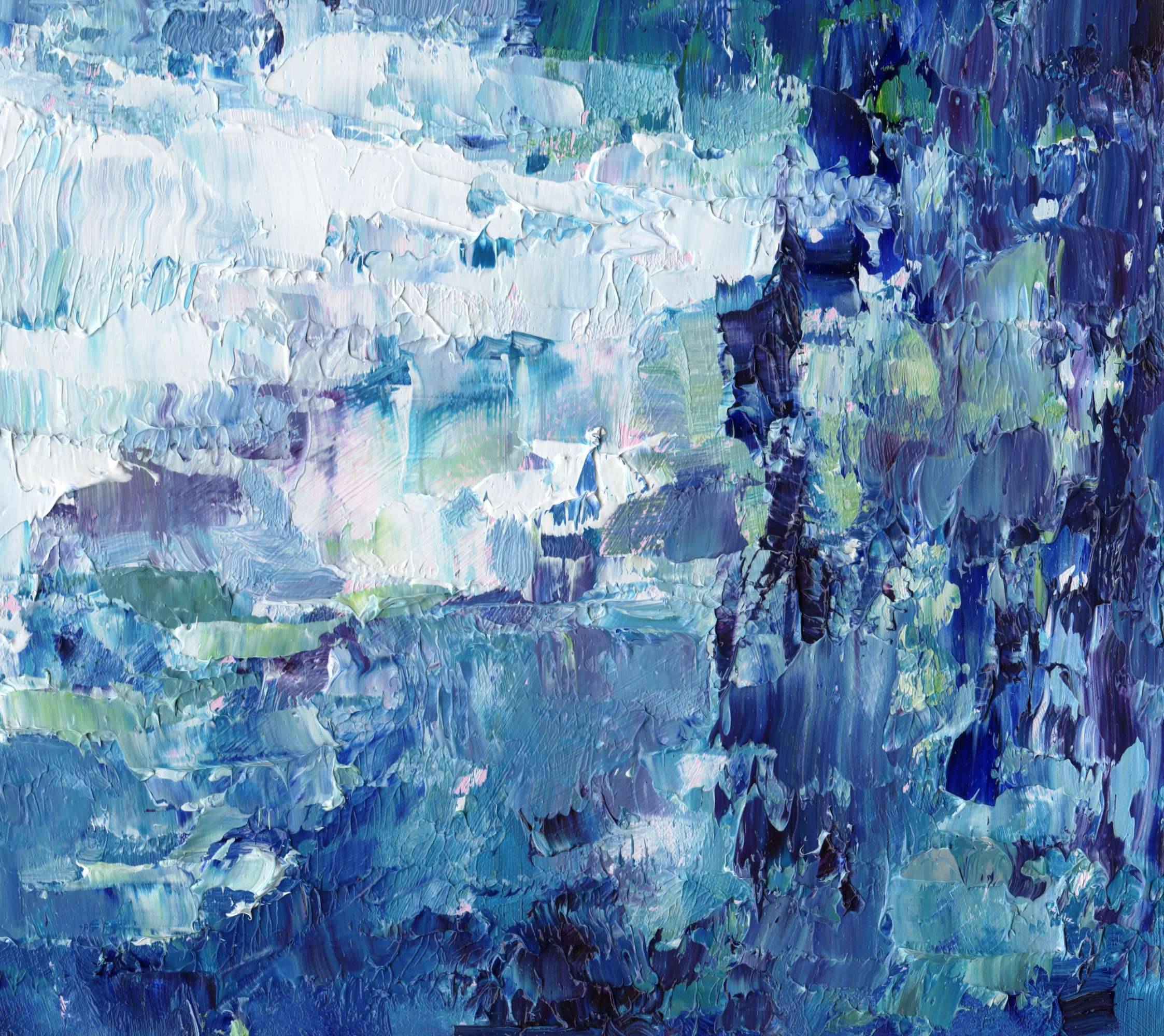This little painting was inspired by the icy landscape of Antarctica and was painted with brushes and pallet knife. The painting is full of lively expressive passages of thick impasto paint.