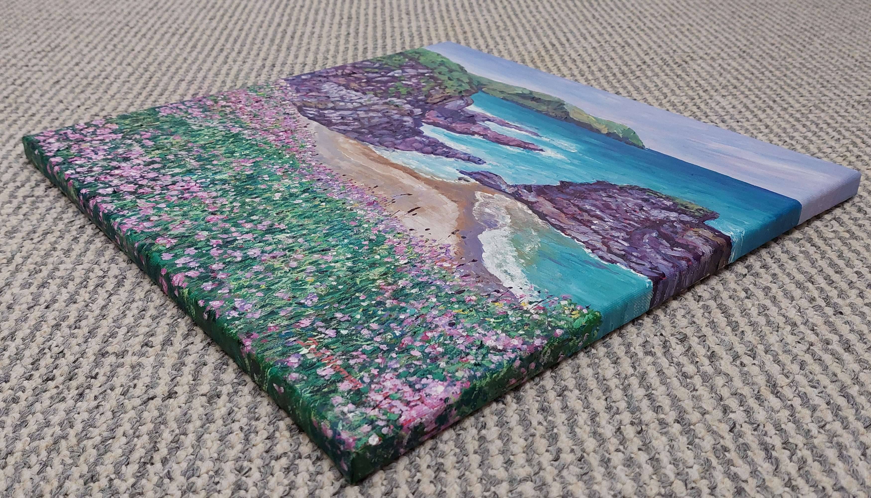This little seascape painting, captures the serene beauty of a coastal paradise, where the wildflowers dance to the rhythm of the sea breeze against the backdrop of rugged cliffs. The vibrant colours and lively brushstrokes convey a sense of joy and tranquillity, inviting the viewer to momentarily escape the hustle of modern life.
